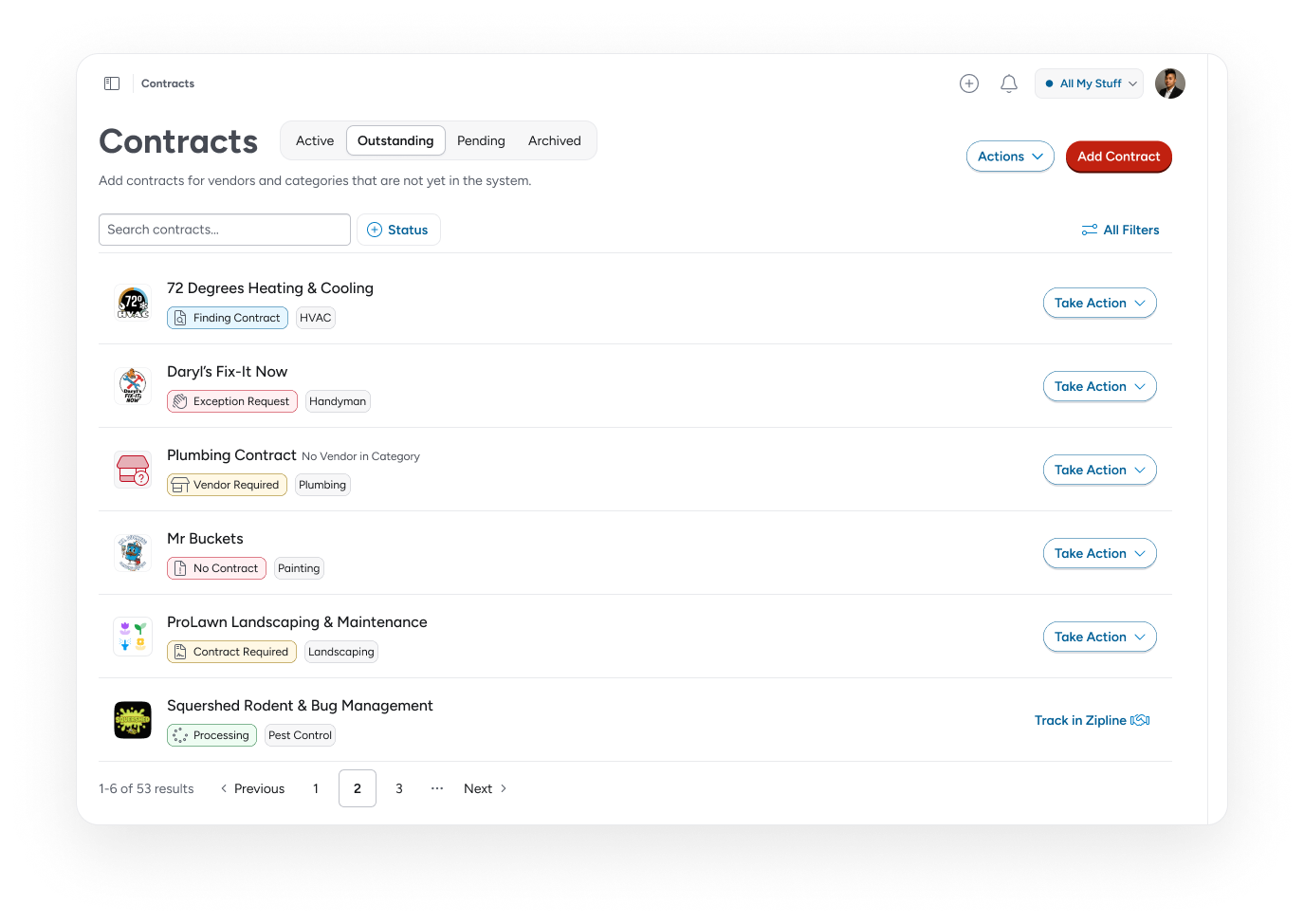 Revyse then compares those requirements to active vendor contracts at each property and surfaces every gap as a Missing Contract for the relevant site team. These gaps fall into one of two categories: