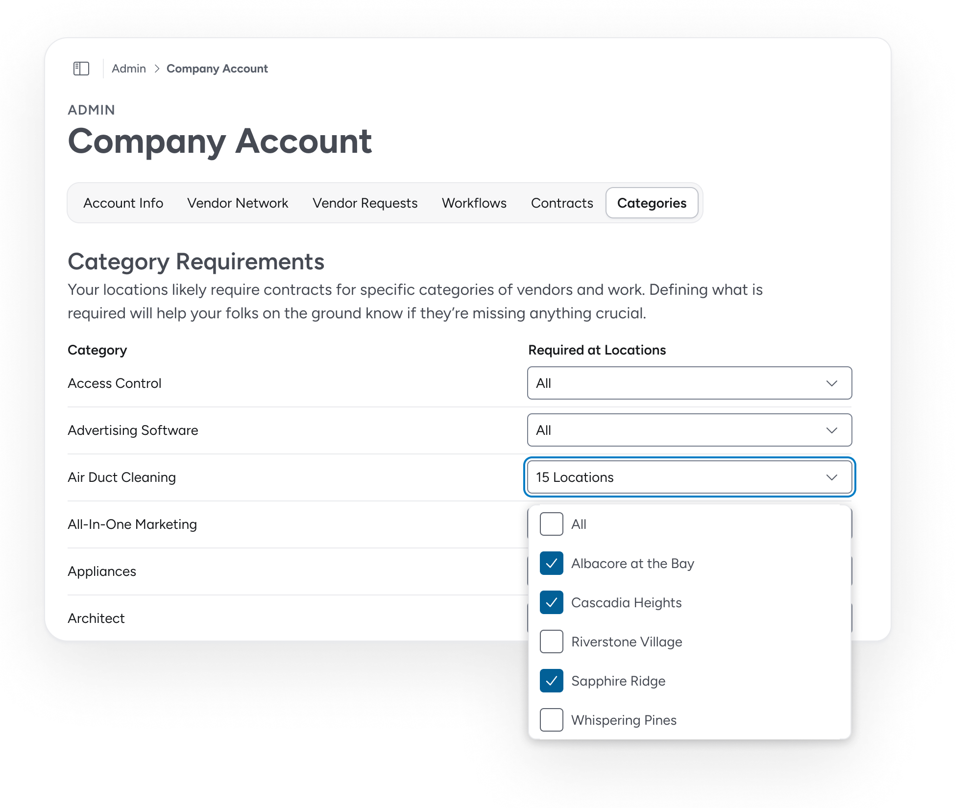 That's not a small distinction. Enterprise portfolios have dozens of properties and hundreds of vendor relationships, and for each required vendor category, every property needs a current vendor with an active contract. Most corporate teams will tell you they simply can't confirm that's true, not because they're not trying, but because no system has ever been built to tell them.